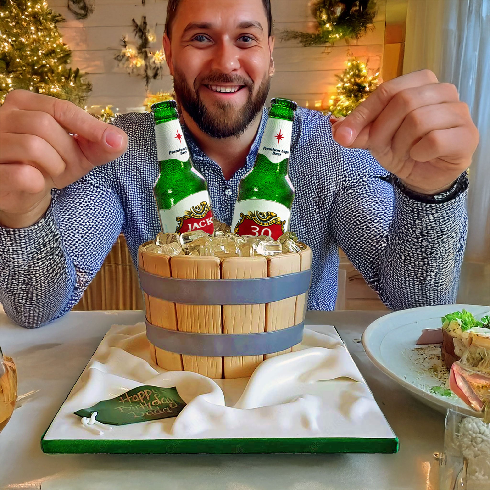 ⚠️ Please note: The cake shown in photos is for illustration purposes only and is not included. This product is the edible sugar bottle topper (and optional décor set).