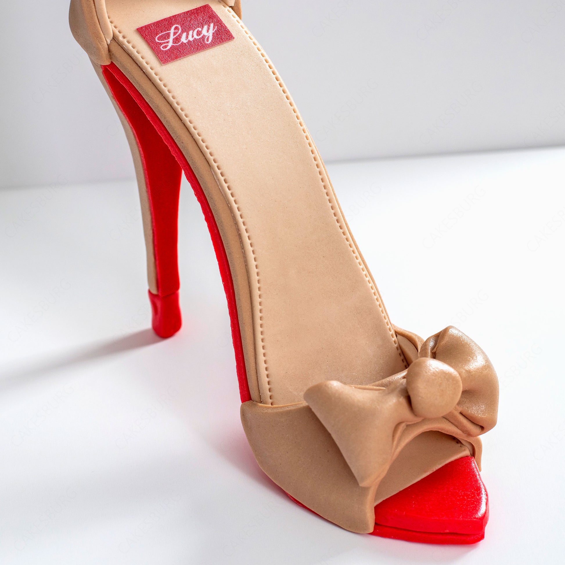 - Package Contents: 1 x Edible Large Sugar Fondant High Heel Shoe Cake Topper. Please note that the shoebox-shaped cake is not included in the price and is for guideline purposes only.