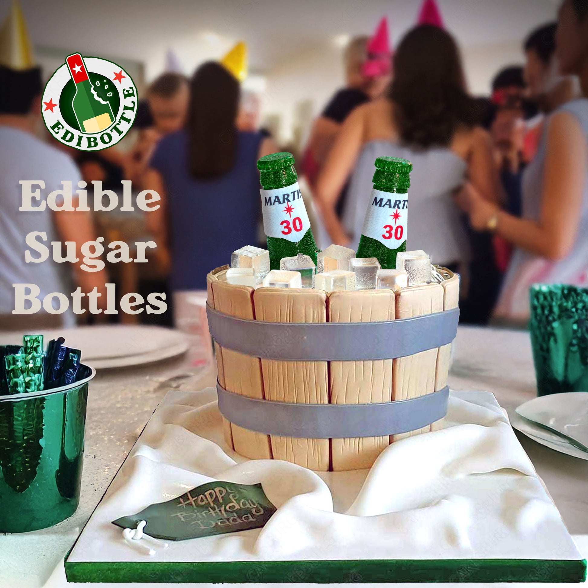 Elevate your cake creations with this stunning Edible Beer Bottle Neck and Ice Cube Set from EdiBottle. Impress your guests with effortlessly elegant and delicious, 100% edible decorations.