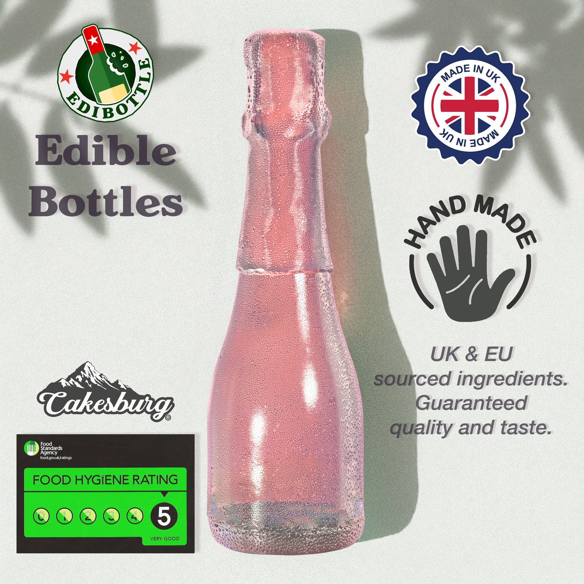 EdiBottle™ is the world’s first handmade edible sugar bottle designed with the perfect clarity, strength, and weight to replace glass on cakes. Each piece is created in our Berkshire studio using double-walled moulds and premium isomalt – a healthier sugar alternative.